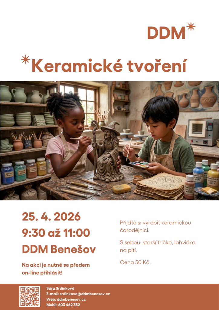 Přijďte si vyrobit keramickou čarodějnici.