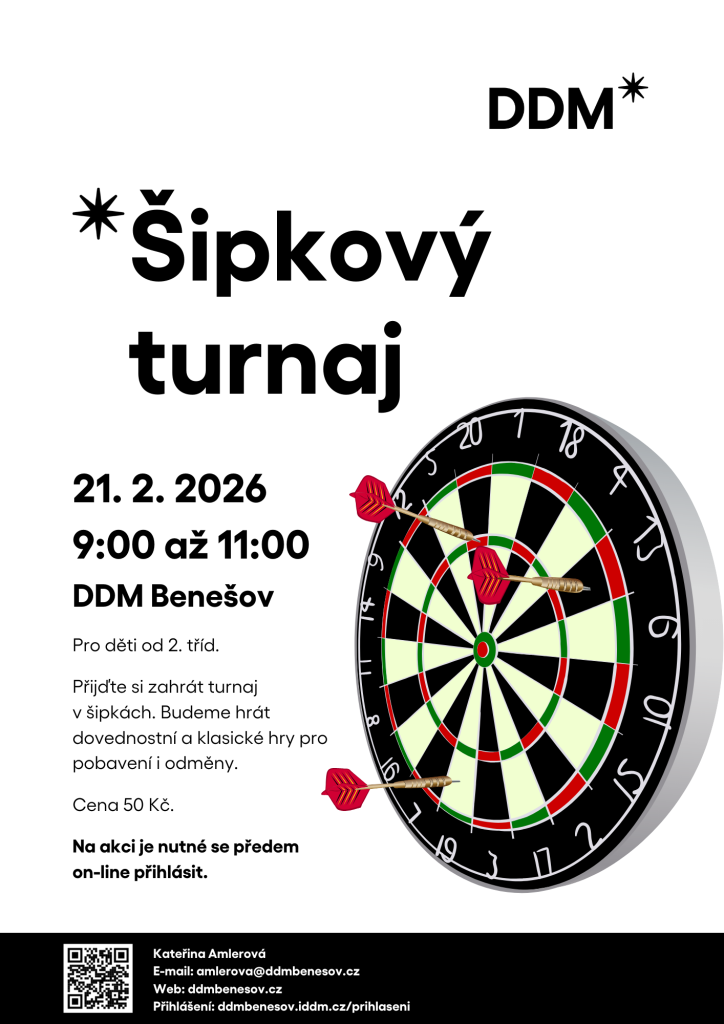 Přijďte si zahrát turnaj v šipkách, který je určen pro děti od 2. tříd.