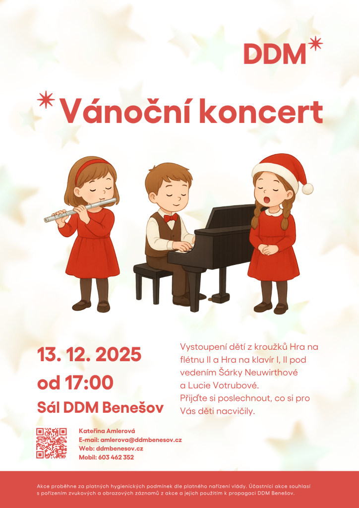 Přijďte si poslechnout, co si děti z kroužků DDM Benešov nacvičily na Vánoční koncert.