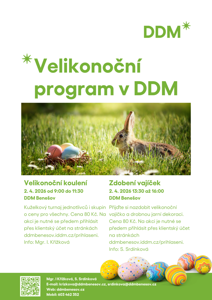 Velikonoční program v DDM Benešov zahrnuje kuželkový turnaj a zdobení vajíček.
