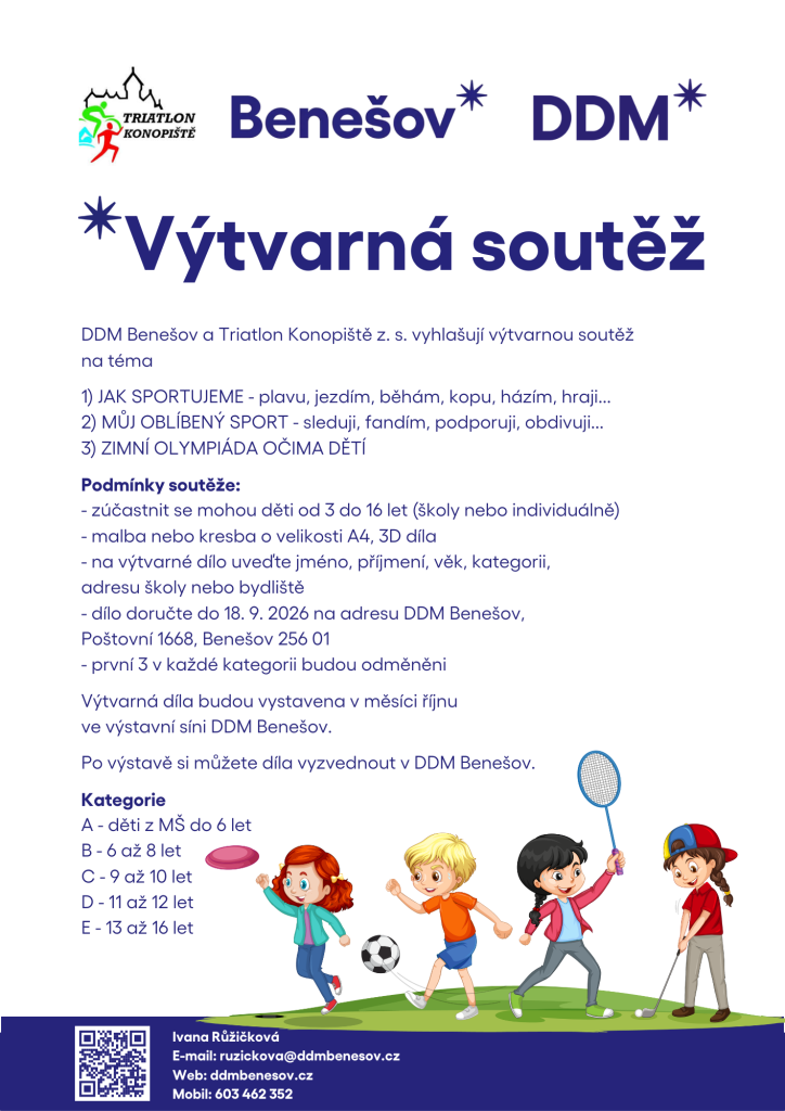 DDM Benešov ve spolupráci s Triatlon Konopiště z. s. vyhlašuje výtvarnou soutěž pro děti ve věku od 3 do 16 let.